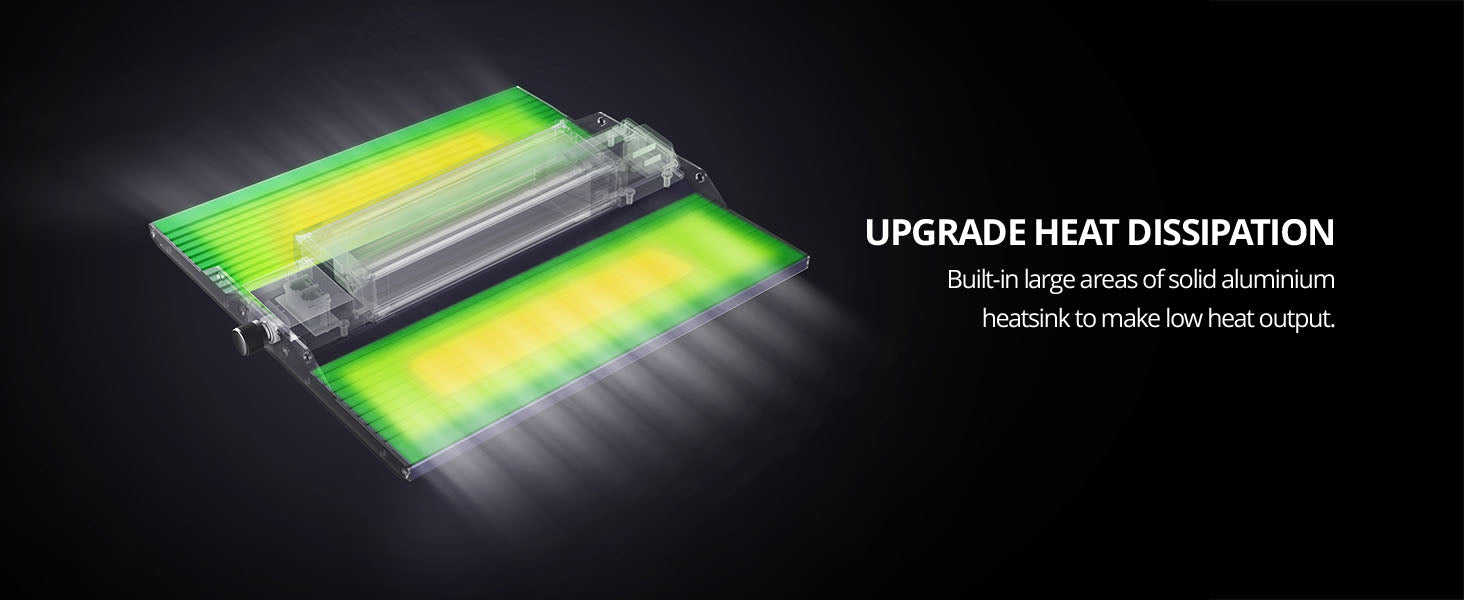 【SUPERIOR HEAT DISSIPATION】Designed for durability. Silent fanless design. Built-in large areas of solid aluminum heat sinks, essential for heat dissipation while ensuring long lifespan of the light.