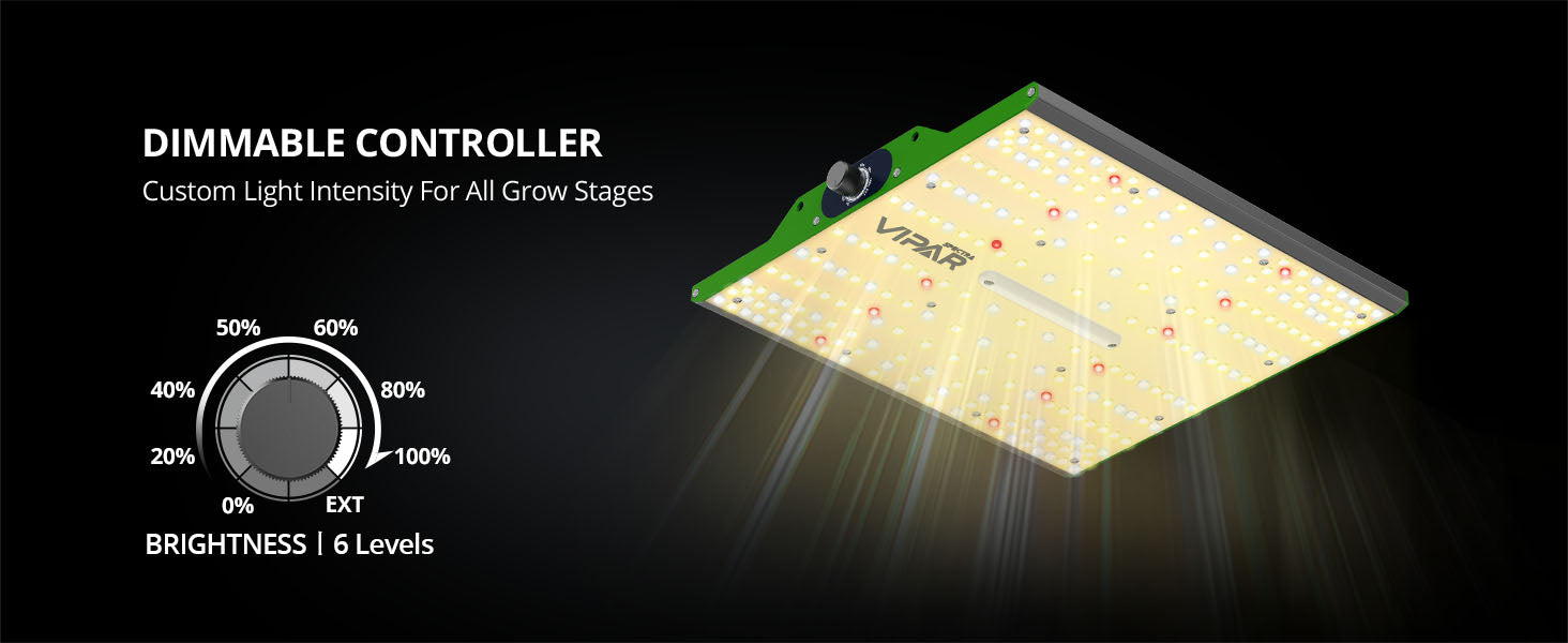 【DIMMER FUNCTION】An added dimmer knob is featured to manipulate the brightness level of the light, allowing flexibility to obtain perfect growth performance for each growing phase.