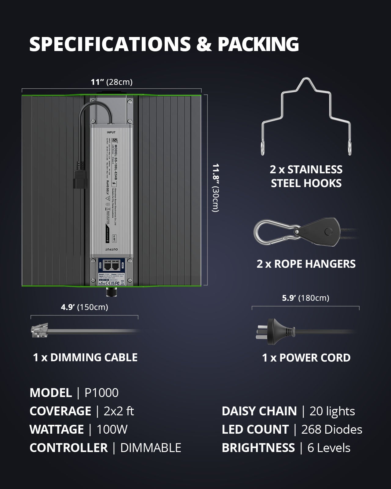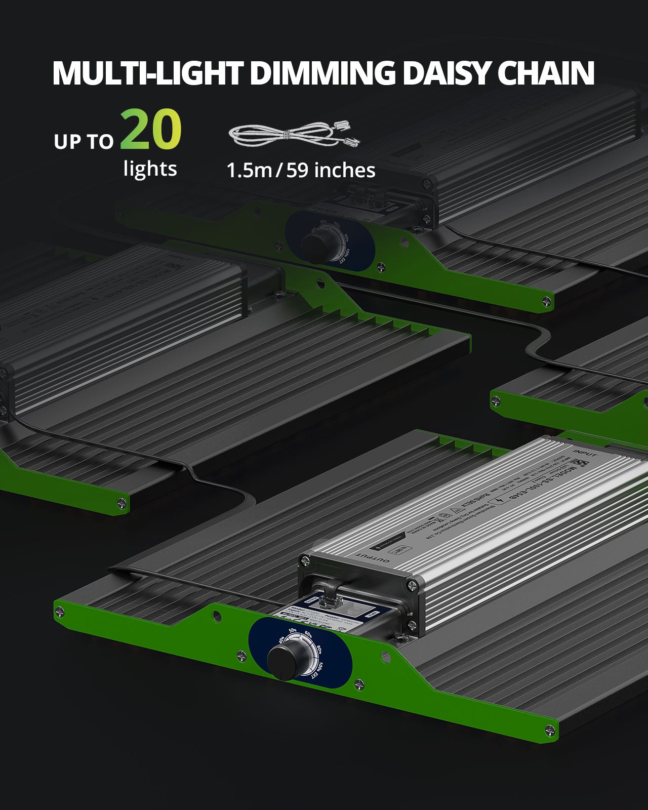 【DAISY CHAIN FEATURE】Allows you to connect up to 20pcs P1000 grow lights for your commercial growing, horizontal and vertical farming, greenhouse planting and hydroponics etc.